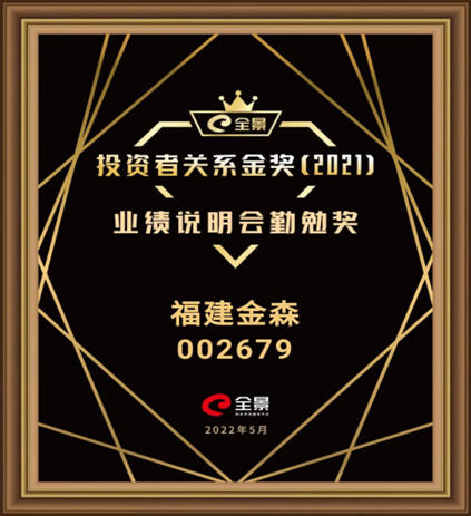 福建金森榮獲2021年度“全景投資者關系金獎”